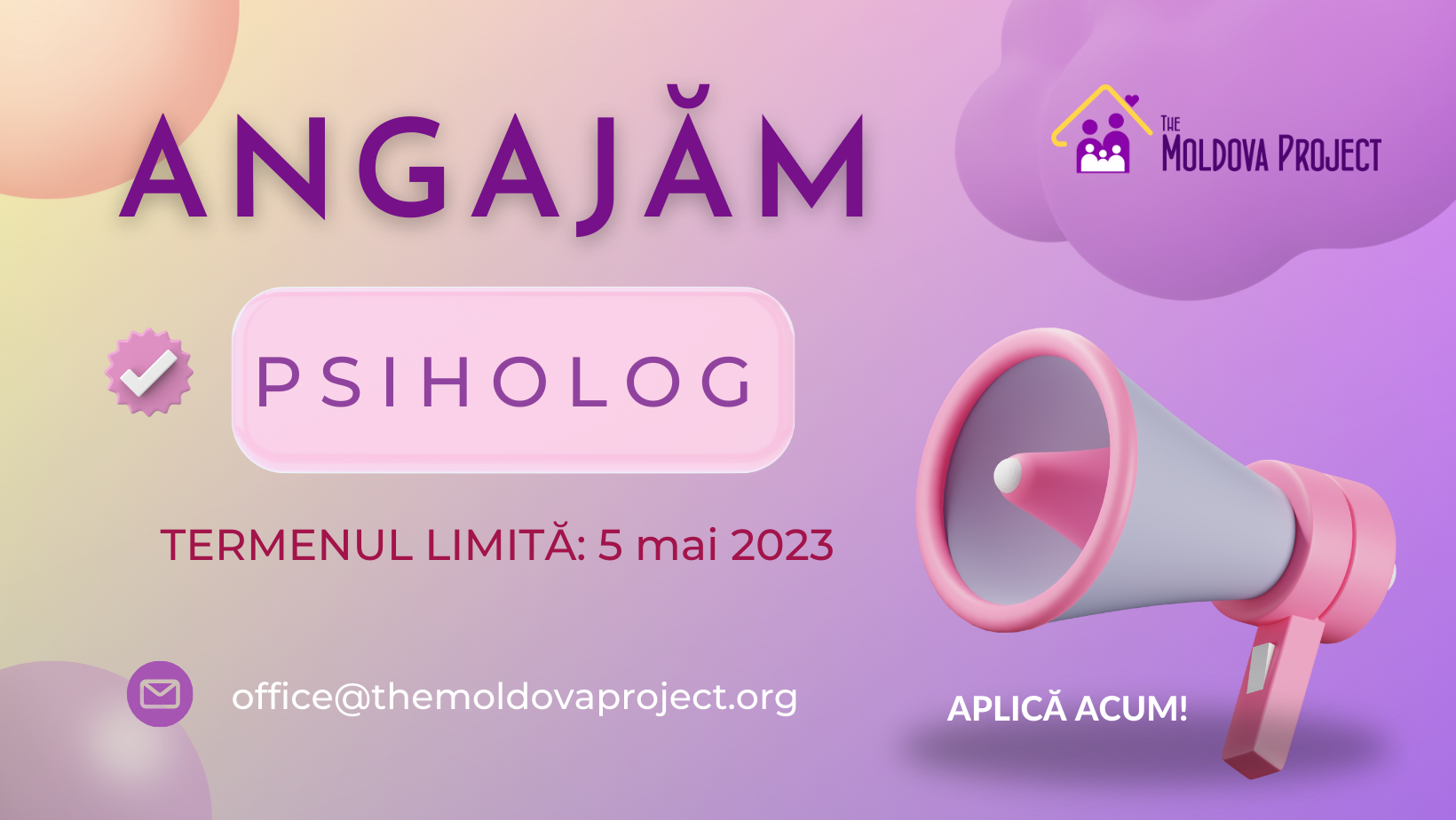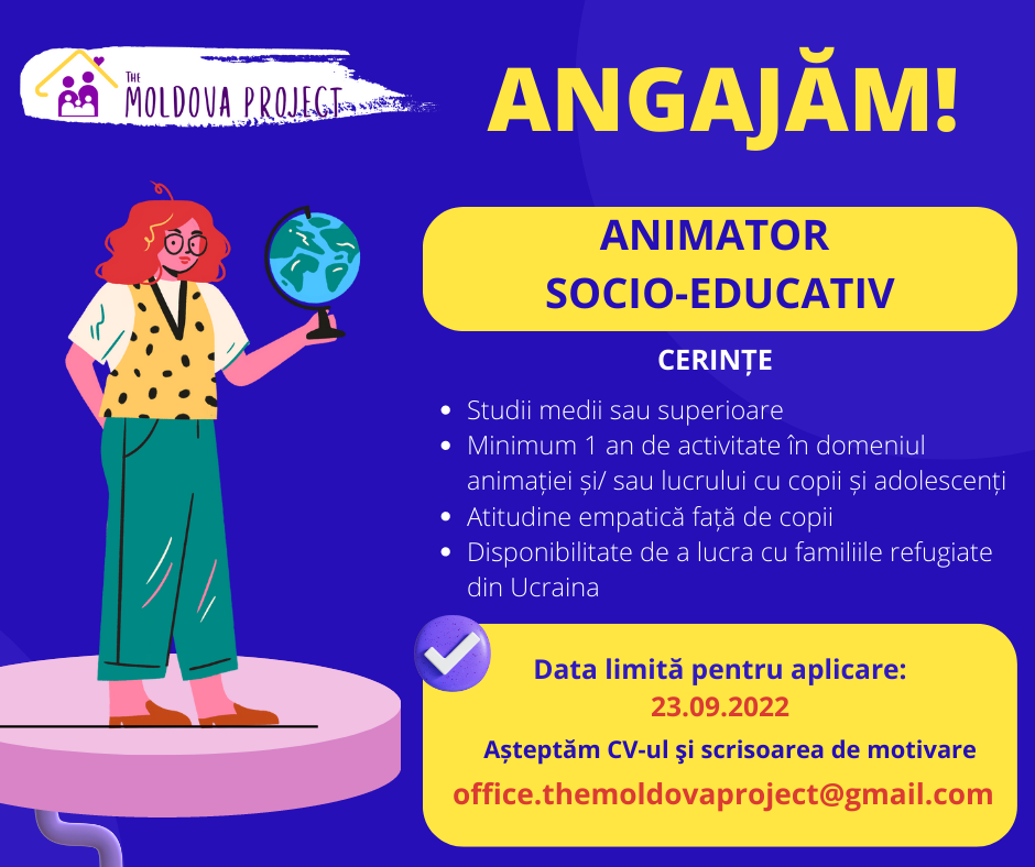 Asociația Obștească „The Moldova Project” anunţă concurs de angajare pentru funcția ANIMATOR SOCIO-EDUCATIV