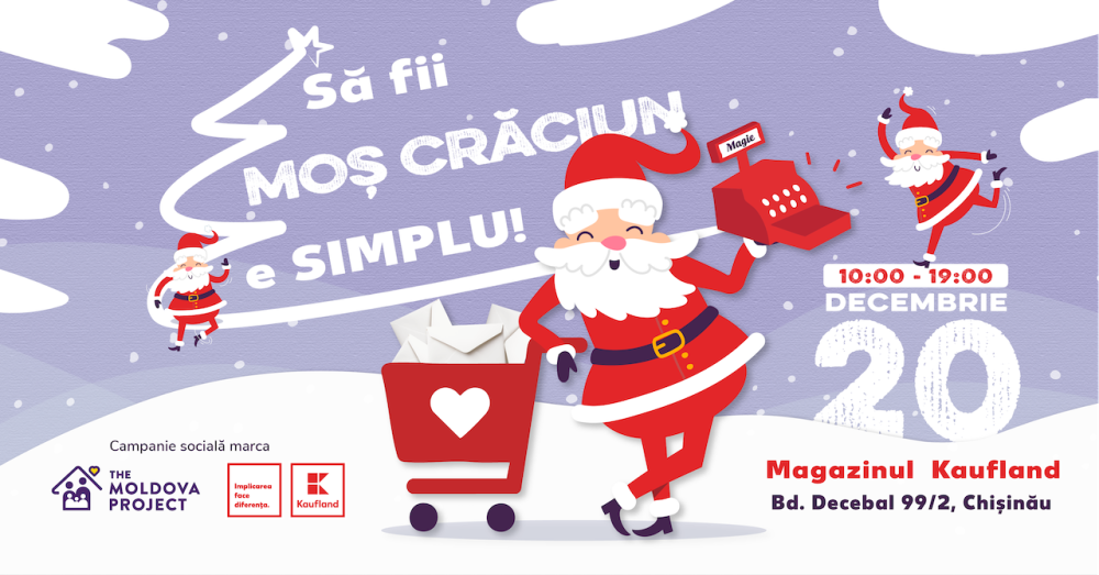 Asociația Obștească The Moldova Project, cu sprijinul Kaufland Moldova, anunță lansarea celei de-a V-a ediții a campaniei „Să fii Moș Crăciun e Simplu!” și a maratonului „Vedete la Casă”, o inițiativă amplă de solidaritate față de copiii și familiile vulnerabile din mediul rural. Evenimentul va avea loc sâmbătă, 20 decembrie 2025, între orele 10:00-19:00, la magazinul Kaufland Decebal (bd. Decebal 99/2, Chișinău), unde trei case de marcat vor fi dedicate exclusiv acestei cauze sociale.